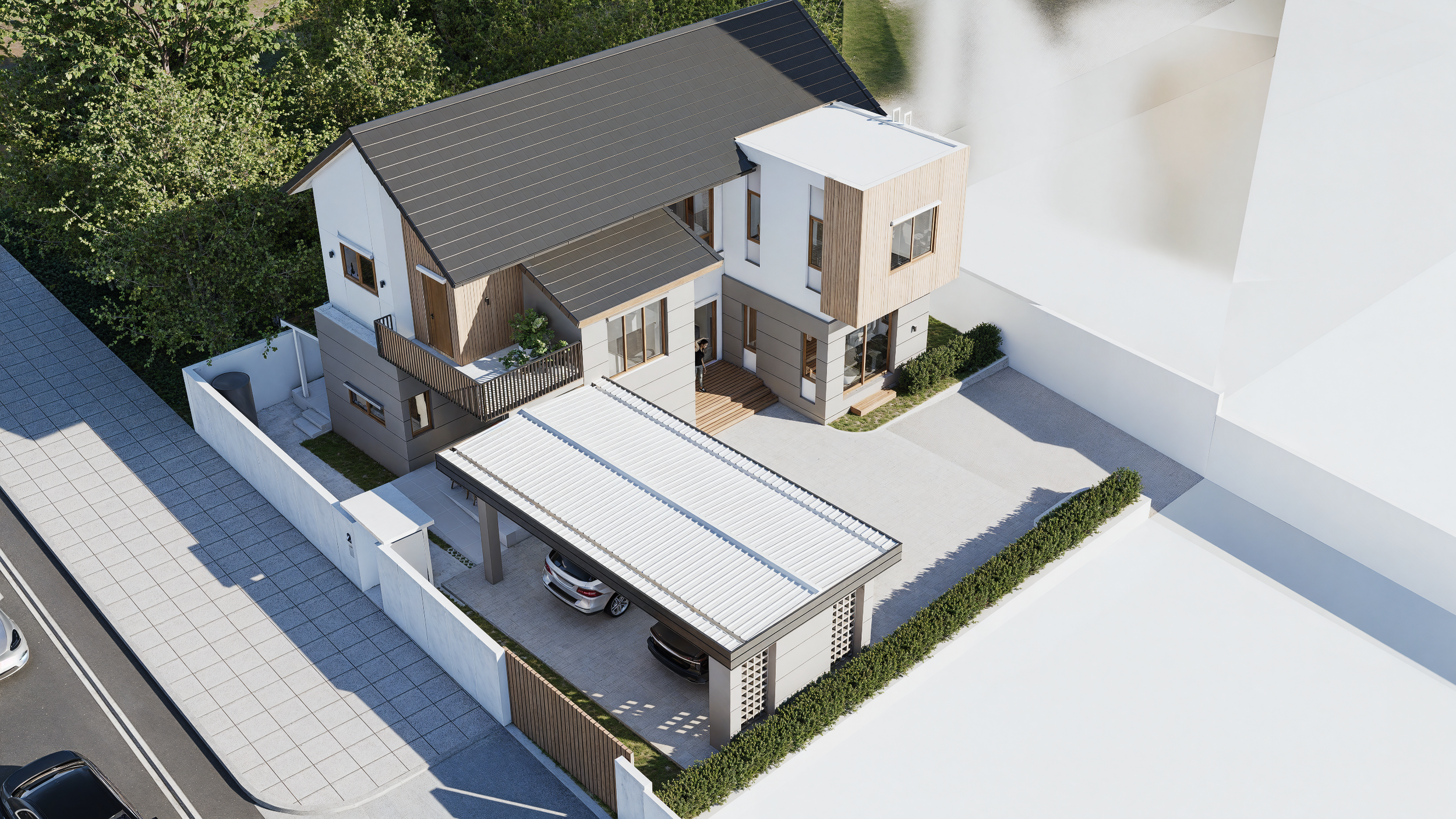 บ้านหลังนี้ถูกออกแบบให้มีพื้นที่แบบ Open Plan เปิดโล่งถึงกันทุกส่วน เชื่อมโยงพื้นที่ใช้งานระหว่างชั้นล่างและชั้นบนผ่าน Double Space ทำให้บ้านดูกว้าง โปร่ง และสว่างมากขึ้น อีกทั้งยังสร้างความรู้สึกเชื่อมต่อกันระหว่างสมาชิกในบ้าน